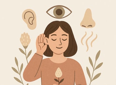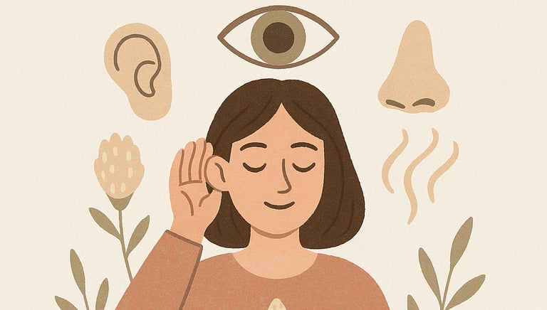 El anclaje en los sentidos es una práctica sencilla y potente que invita a conectar con el presente a través de lo que percibimos: sonidos, olores, texturas, sabores y colores. Al enfocar la atención en las sensaciones sensoriales, se interrumpe el piloto automático y se despierta una conciencia más vívida del aquí y ahora. Es ideal para integrar el mindfulness en la vida diaria, incluso mientras se camina, se come o se toma una ducha. También es muy útil para salir de estados mentales rumiantes y reconectar con el cuerpo y el entorno.